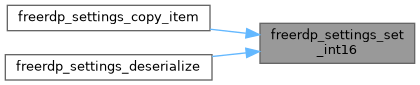 | WINPR_ATTR_NODISCARD FREERDP_API BOOL | freerdp_settings_set_int16 (rdpSettings *settings, FreeRDP_Settings_Keys_Int16 id, INT16 val) |