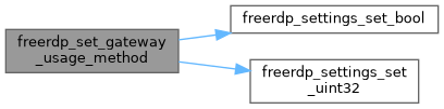 | WINPR_ATTR_NODISCARD FREERDP_API BOOL | freerdp_set_gateway_usage_method (rdpSettings *settings, UINT32 GatewayUsageMethod) |